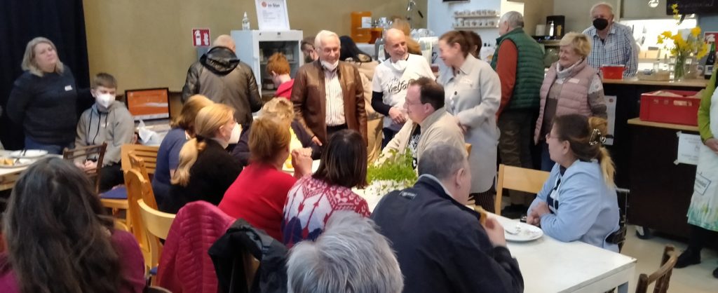 Am Grenzenlos Kochabend vom 26. März 2022 nahmen viele Gastgeber*innen mit ukrainischen Mitbewohnerinnen teil – und auch der Bürgermeister sprach mit den neu Angekommenen.