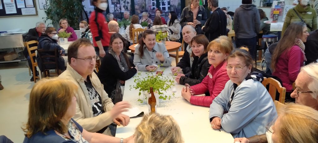 Nach einem Koordinationstreffen in der Gemeinde konnte Anna Prianichnikova im Jugendzentrum JUZ einen „Ukraine-Treffpunkt“ einrichten, der ab Mai 2022 zunächst wöchentlich Geflüchteten die Möglichkeit gab, sich zu treffen und auszutauschen.